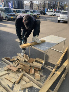 お次は 解体した木材を切断!